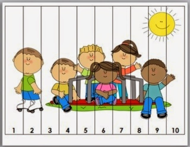 Αρχικά, μπορούμε να πλαστικοποιήσουμε την εικόνα, να τη δείξουμε στα παιδιά για να την δουν ολοκληρωμένη και ύστερα να την κόψουμε σε λωρίδες. Αυτά πρέπει να συνθέσουν την εικόνα τοποθετώντας τις λωρίδες σε αριθμητική σειρά.